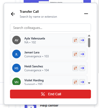 Easily transfer or forward calls to the right colleague with just a few clicks. Quickly search and filter colleagues to find the best person to handle the call.