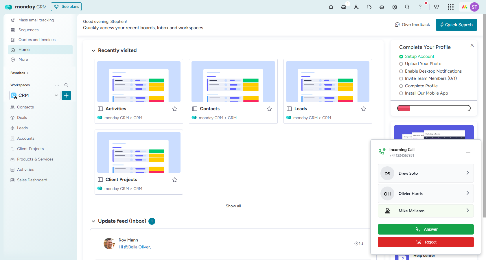 Our system auto-detects the incoming contact and provides a direct link to their CRM record, so you always have the right context at your fingertips.